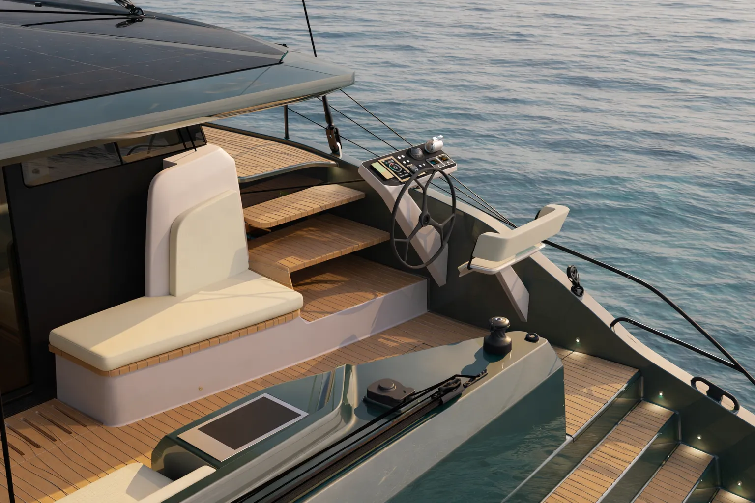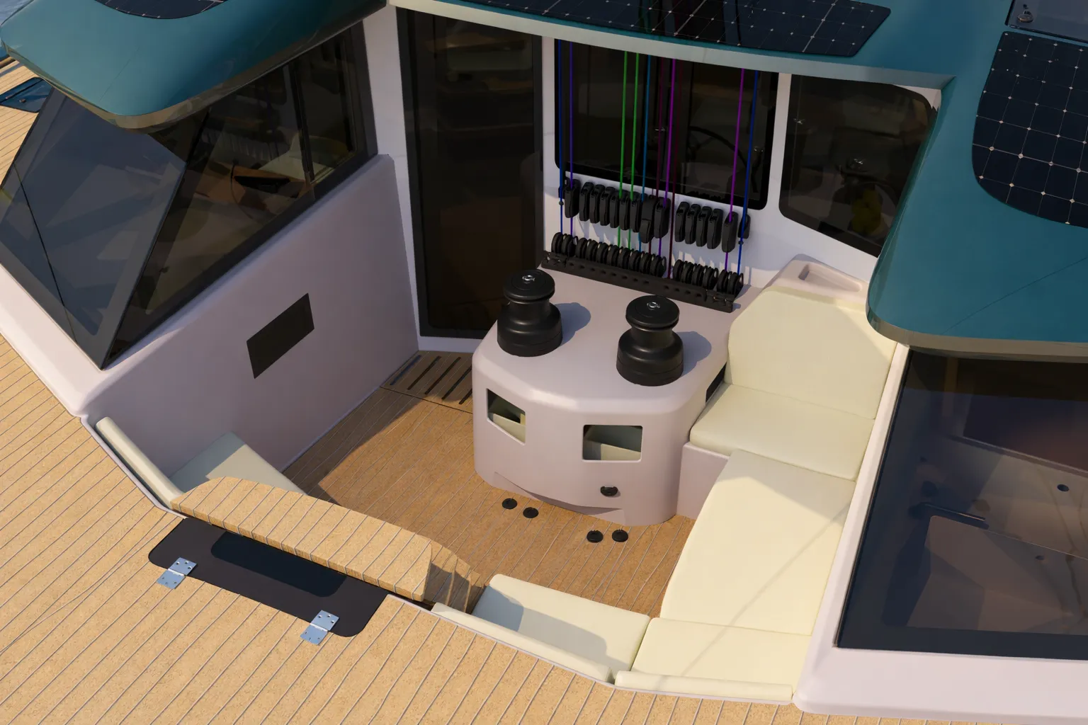 "The deck layout has been designed around the sailor's workflow. Every control is exactly where you expect it, every line runs fair, and the cockpit provides 360-degree visibility."